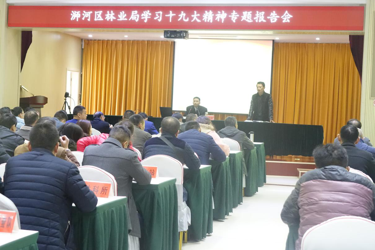 11月22日下午,区林业局机关党委邀请区委党校朱朝忠教授为全局党员召开了一次学习十九大精神的专题报告会。会议以"新成就 新时代 新使命 新思想 新征程"为主题,讲述了党的十八大承前启后、继往开来,以习近平同志为核心的党中央开启了中国特色社会主义新时代,党和国家事业发生了历史性变革,取得了历史性成就。讲述了党的十九大将习近平新时代中国特色社会主义思想确立为党的行动指南,是党的指导思想的又一次与时俱进。讲述了十九大对决胜全面建成小康社会,全面建设社会主义现代化国家的战略部署和奋斗目标。通过学习,全体党员有了深刻的认识:党的十九大报告是我们党迈进新时代、开启新征程、续写新篇章的政治宣言和行动纲领,为党和国家事业进一步发展指明了前进方向。通过学习,全体党员更加坚定要在以习近平同志为核心的党中央坚强领导下,进一步加强党的十九大精神的学习,以实际行动认真抓好贯彻落实,立足本职工作,不断开创浉河推向前进。