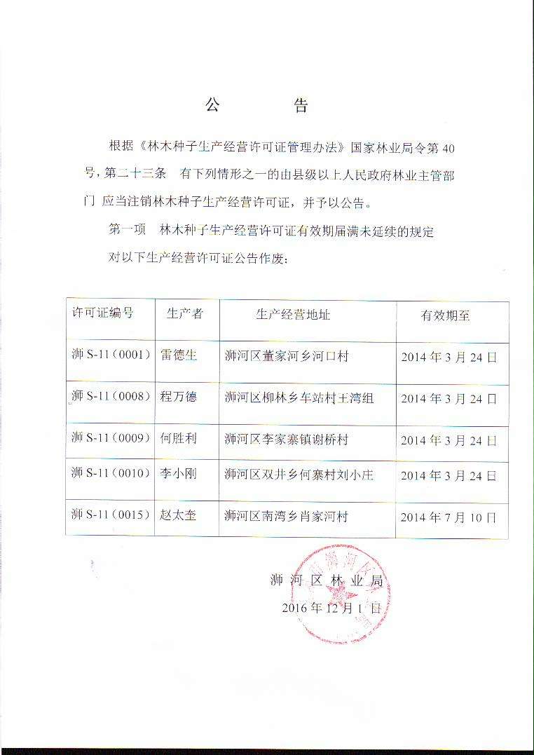 关于注销林木种子生产经营许可证的公告