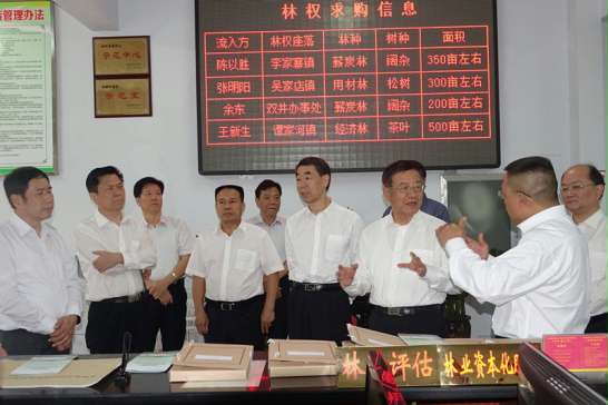 9月26日,国家林业局局长张建龙一行在河南省副省长王铁、河南省林业厅厅长陈传进、信阳市副市长郑志强、信阳市林业局局长肖国平的陪同下深入浉河区林权管理服务中心,视察指导浉河区集体林权制度深化改革工作,浉河区区委书记邵春杰、区长邵七一陪同视察。